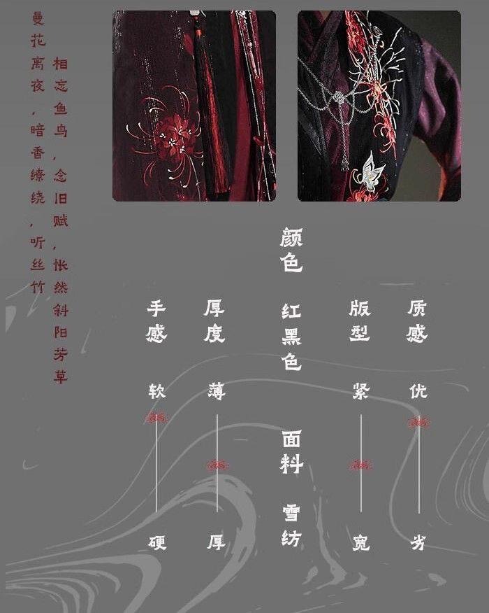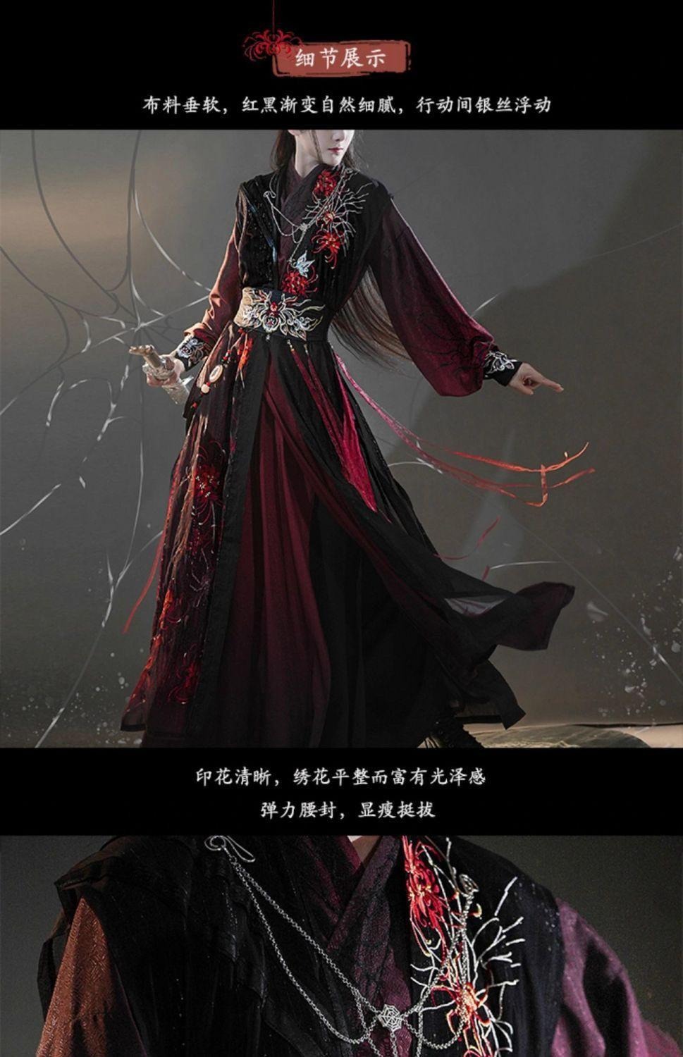 Be the first to review “Hanfu for men and women, complete set, featuring elements of the Song Dynasty, including a cross-collar long robe, jacket, and a black and red knight-errant style.”