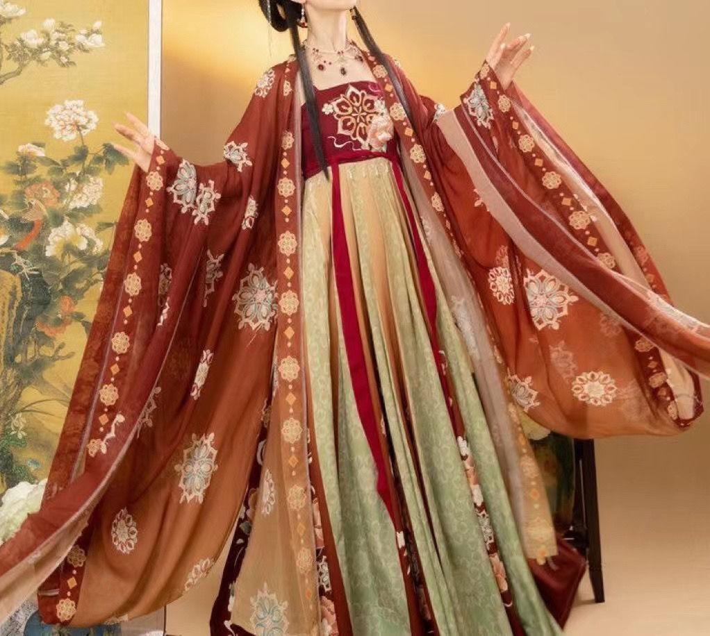 Plus-size Hanfu for women weighing 200 jin (100 catties): Spring/Summer/Autumn Chinese Style Printed Ancient Costume Tang Dynasty Style Hezi Skirt - Super Fairy-like and Slimming